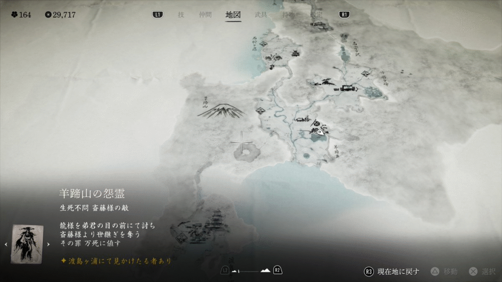 今作のアクションは前作ゴーストオブツシマと基本的には同じシステムで、敵に見つからずに相手を闇討するか、一騎打ちを挑み正々堂々と敵を薙ぎ払っていくか、自分で戦闘スタイルを選べます。前作ツシマでは主人公仁は誉ある武士であったため、どの戦闘スタイルを選ぶかはプレイヤーにとっても重い選択だったのですが、今作の主人公篤はただの流浪人、怨霊なのでプレイヤーも篤も何も躊躇することなく闇討や目潰し粉等を使って敵を倒すためなら何でもできます!