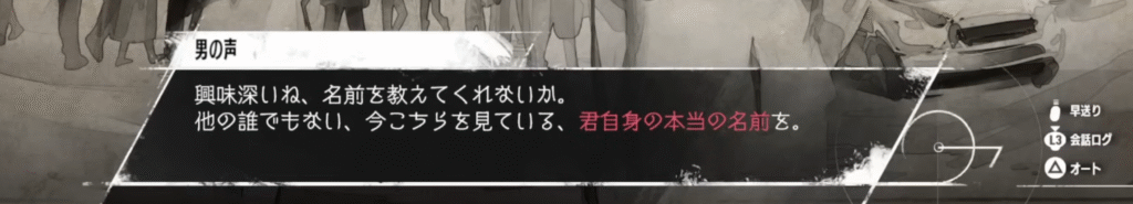 まず、ゲーム開始直後に「今プレイしているそこのあなたの本当の名前が知りたいんだ。」と、急にプレイヤーに語り掛けてきます。もうこの時点で「お・・・?」となりませんか?この急なメタ発言、確実にゲーム終盤に何かとんでもない展開に絡んでくる気がしませんかね?